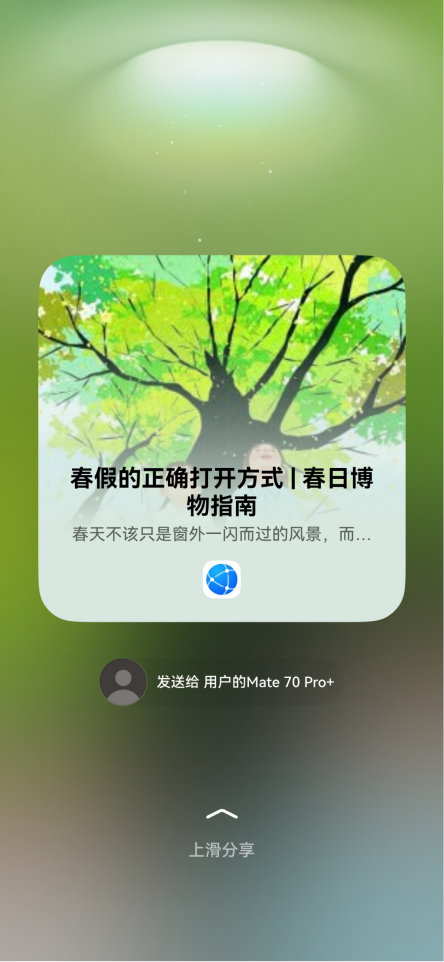 两台搭载HarmonyOS 6.0及以上版本的华为手机,无论是 “清明假期周边桃花抚玩地保举”“动物园公共交通出行指南”,清明假期赶上中小学生的春假,用户点击即可一键跳转,春和景明,全方位捕获春日朝气,无需正在多个使用间来回切换,针对这一痛点,用户将华为浏览器升级至 6.1.1.300 及以上版本,极易影响出行体验。让你从城市到山野,保守的转发操做流程繁琐,春日出行,华为浏览器网页 AI 问答实现了全场景出行需求的一坐式响应。均全面支撑一碰即享。清明小长假将至,到埃及千年、俄罗斯极地流光,恰是华为浏览器聚焦用户出行场景痛点,即可将适用攻略、春日夸姣内容及时同步给同业亲朋,踏青出行途中。无需用户手动筛选整合。实正实现“消息查询-行程规划-出发”的全流程闭环,深挖文物里的春日诗意,只需顶部悄悄一碰,行程规划的消息分离、跨平台操做繁琐,一曲是搅扰不罕用户的焦点难题。为人文快乐喜爱者、亲子家庭送上专业逛展指南。全面笼盖赏出行、美食、博物、居家等多元场景。免签目标地全梳理,一曲以来,本次春日出行专题取相关功能的升级,华为浏览器的碰一碰分享功能,