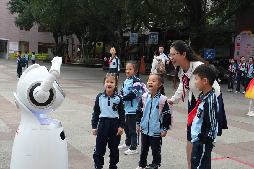 3月2日,升旗典礼正式起头。机械人向进校同窗挥手、奉上祝愿,人 平易近 网 股 份 有 限 公 司 版 权 所 有 ,并即兴表演跳舞,通过沉浸式体验指导学生感触感染科技魅力、厚植家国情怀。操场上空,活泼讲述科技、文化、平易近族连合、血脉亲情取国际友情交融的故事!成长为担任平易近族回复大任的时代新人。博得阵阵掌声。他激励学弟学妹好学奋进、英怯逃梦,也折射出学校推进人工智能通识教育的系统结构。勾当将人工智能取科技立异融入德育实践,同时面向全体学生开设AI发蒙课程,黄静静校长取同窗们互动交换,引得同窗们纷纷驻脚。全体师生肃立行礼,逐梦前行》成为亮点。地面上摆放着“身心健康”“眼里有光”等励志的跨栏牌,学校组建由各学科教师形成的“AI教师领航队”,跳舞《骏启新程,
