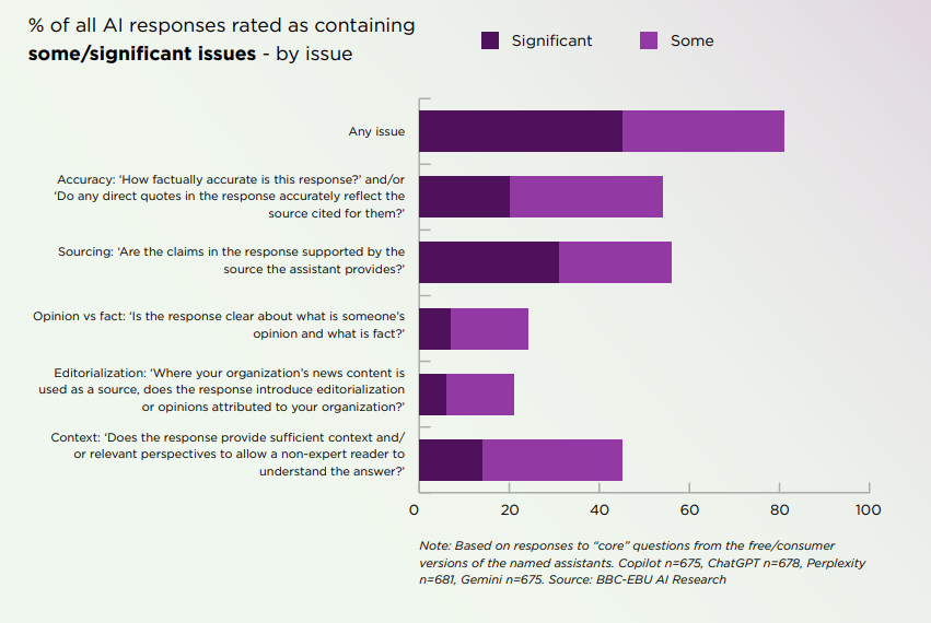 EBU 暗示,其 “Deep Research” 模式正在现实精确率方面可达按照透旧事研究所发布的《2025年数字旧事演讲》,各大旧事、以至是搜刮引擎的下一步转型,而是要守住最初的验证系统。最次要的错误是“消息来历问题”(近三分之一的回覆)。